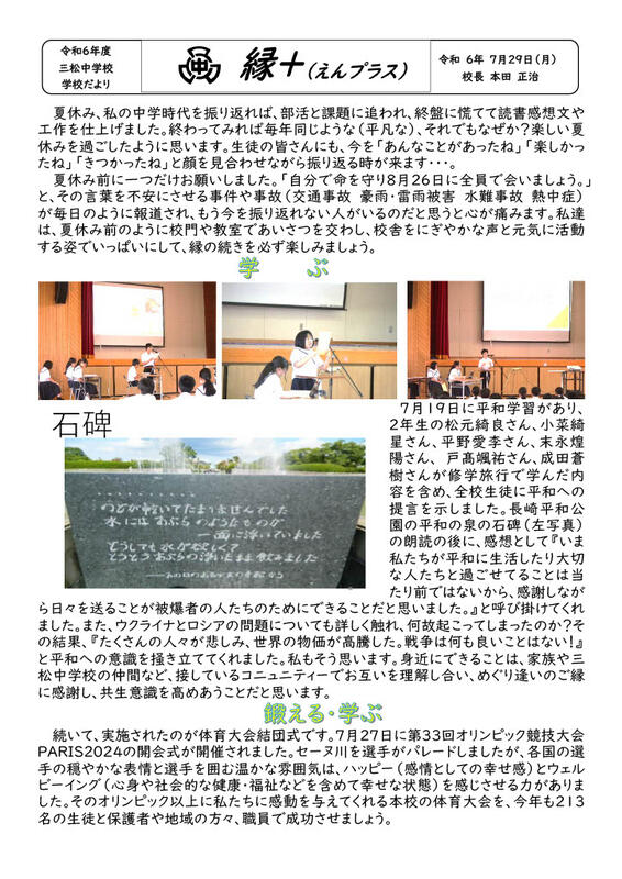 学校だより『縁+(えんプラス)』8月6日号を掲載しました