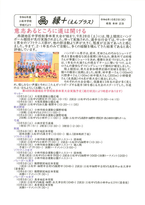 学校だより「三松魂」令和4年10月12日号が発行されました