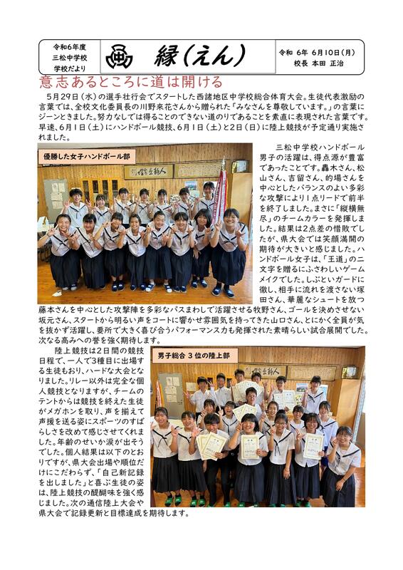学校だより『三松魂」6月9日号を掲載しました