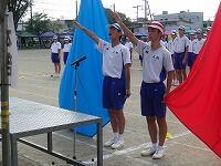 式では各部の主将から大会への抱負を発表し、生徒代表として3年の野口菜々美さんから激励の言葉、校長先生からの話をいただき、男子ソフトテニス部主将の森山隼太さんによる力強い選手代表宣誓、吹奏楽部の演奏による校歌斉唱と続きました。