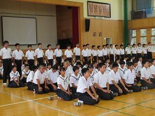 今週末から始まる西諸地区中学校秋季体育大会に向けて壮行式が行われました。