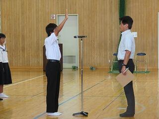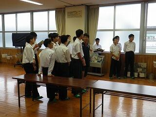 (各部抱負は、①男子バレーボール部→②女子ソフトテニス部→③軟式野球部→④男子ハンドボール部→⑤女子バレーボール部→⑥陸上競技部→⑦女子ハンドボール部→⑧剣道・弓道競技→⑨男子ソフトテニス部の順番で行いました。)