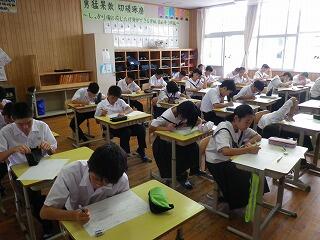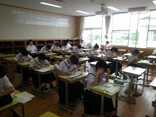 久しぶりに生徒たちが元気に登校しました。今日と明日の2日間は「サマースクール」です。サマースクールでは、夏休みの期間を利用して基礎学力の向上や個別指導の充実を図ることとしています。また、来週からの授業再開に向けて生活のリズムを少しずつ元に戻していくことにも効果的です。サマースクールでは高校生などの協力も得ながら生徒たちは学習に取り組んでいました。