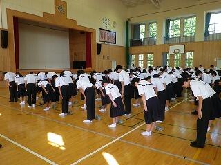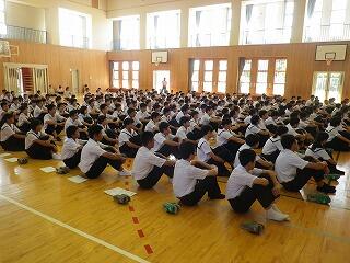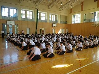 1学期後半の始まりにあたり全校集会が開かれました。集会で校長先生から、これから先の学校生活について自分でよく考え判断することの大切さについてお話がありました。