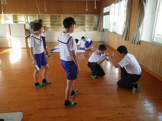 (体育館では組体操の並び位置の確認を行いました。)