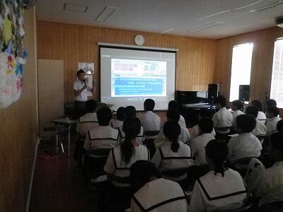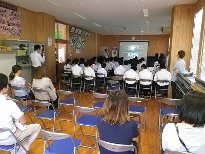 先日は3年生を対象にした高校説明会を開催しましたが、引き続き今日は2年生の高校説明会を開催しました。各高校から担当の先生が来校され、学校の校風や目標をはじめ、学科や部活動、そして高校卒業後の進路までを映像を交えて説明していただきました。