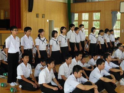 また、7月23日に宮崎県吹奏楽コンクールに出場する吹奏楽部の生徒も壮行式に臨みました。部員が少ない中で運動部と同様、懸命に練習してきました。壮行式では楽曲演奏を披露しました。
