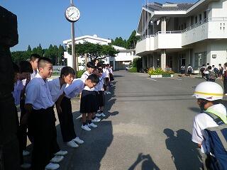 おはようございます!九州南部が梅雨明けし本格的な夏を迎えました。今日も朝から強い日差しが射していますが、生徒たちは元気に登校してきました。