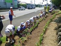 今日は悪天候で延期になっていた1年生による国道沿いの花壇植栽を行いました。場所は国道268号線の金鳥井交差点付近の花壇です。厳しい暑さの中でしたが、水分補給をこまめに行いながら、ペンタス、ポーチュラカ、サルビアなどの花々をみんなで植えていきました。少しでも国道を通るドライバーの皆さんがホッとなれる風景になればいいですね。
