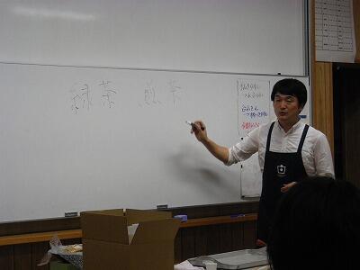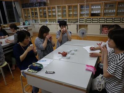 先週金曜日(6月29日)の夜に調理室にて家庭教育学級の「お茶育会」を開講しました。講師には宮崎市花ヶ島町で日本茶カフェや茶葉販売を展開し、日本茶プロデューサー・日本茶ソムリエとして活躍している「白玄堂茶屋」の白尾尚美様をお招きし、日本茶の歴史をはじめ、お茶の種類、お茶の淹れ方等をユーモアたっぷりに講話していただき、実際に用意していただいた2種類の茶葉の香りや味を試し、水出ししたお茶を試飲して味の違いを体験しました。