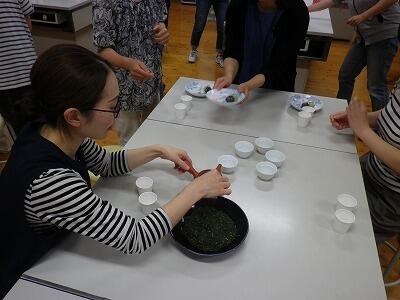 普段の生活ではあまり考えずに淹れていたお茶ですが、お茶の淹れ方では一煎目、二煎目、三煎目すべてにお湯の入れ方、茶葉の蒸らし方、淹れるまでの時間等々、すべてにおいて手順があることに受講者の皆さんは驚きと関心をもって聴き入っていました。