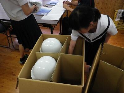 新燃岳の噴火が先週まで続いていましたが、気象庁の噴火警戒レベルが「2」(火口周辺規制)まで下げられたことに伴い、噴石防止のためのへルメット着用での通学をいったん解除することとなり、昼休みに学校ではヘルメットの回収を行いました。