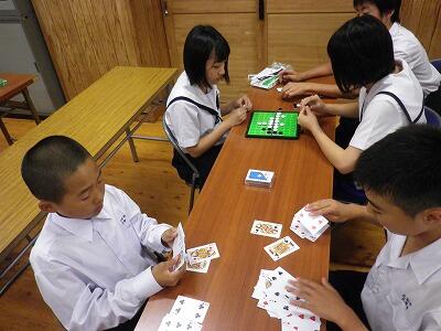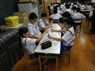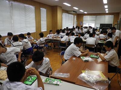今日は台風7号の影響もありますが、梅雨の後半とあってしばらくは天気も雨予報が続きそうです。雨の日は図書室で過ごす生徒もいますが、学校では新しい昼休みの過ごし方として、将棋、リバーシ、トランプなどを貸し出すこととしました。少しは生徒たちにとって学習の息抜きができればと考えています。今日は貸し出し初日とあって80名以上の生徒が利用するほどの盛況ぶりでした。