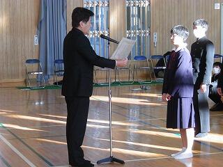 (表彰:女子ソフトテニス競技 小水流・前野ペア 準優勝、陸上競技 2年男子200m 滝口俊人さん 第1位、共通男子110mH 小斉平昌毅さん 第3位)