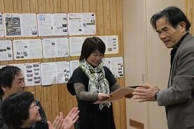 家庭教育学級の一年間の活動をまとめたパネルづくりを夜遅くまで行っていただきました。