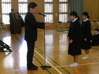 新入生代表の新田風花さんが、「制服になって中学生になったことを実感し、身が引き締まる思いであること、勉強にもしっかりと向き合い取り組んでいきたい、また、新しくなったプールでの水泳が楽しみである」ことを述べていました。慣れない環境に不安と心配があるようですが、坂下さんもしっかりと支えていきたいと言っていますので、心配しないでください。