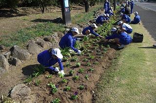 冬に咲く花は夏に比べて少ないのですが、小林の寒さに負けず咲き続けてほしいものです。生徒たちも寒い中でしたが、最後まで植栽作業をがんばりました。