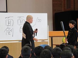 続いて、校長先生の話では、人間の「感性」について東洋大学が実施している「現代学生百人一首」で選ばれた短歌を紹介しながら、将来ロボットやAIが人間に代わって様々なことをしていくという予測がある中で、これからの時代は人間だけが持つ感性を豊かにしていくことが大切であることなどを生徒たちに語りかけました。