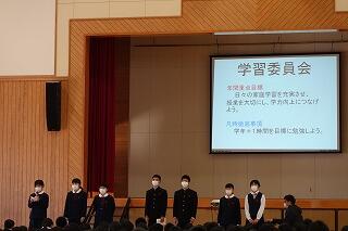それぞれの立場で、昨年度までの自分の反省を踏まえ、学習、部活、学校行事等について抱負を述べていました。