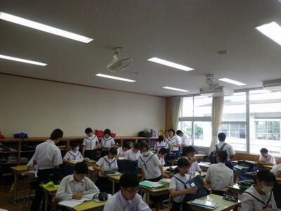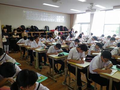 久しぶりに生徒たちが元気に登校しました。今日と明日の2日間は「サマースクール」です。サマースクールでは、夏休みの期間を利用して基礎学力の向上や個別指導の充実を図ることとしています。また、来週からの授業再開に向けて生活のリズムを少しずつ元に戻していくことにも効果的です。サマースクールでは高校生などの協力も得ながら生徒たちは学習に取り組んでいました。