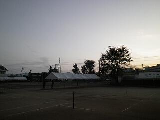 さあ、今日は体育大会です。夜空から明るくなるにつれて澄み切った青い空が見え、いい秋晴れになりそうです。運動場も絶好のコンディションです。