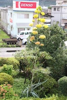 本校には、リュウゼツランの一種であるアオノリュウゼツランが校門入って右側にあります。