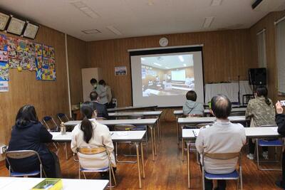 はじめに、ふれあい学級長の加藤 凡子さんと肝付 正籍校長先生のご挨拶をいただき、先日小林市PTA研究大会で発表した1年間の取組を紹介する動画で、活動の振り返りを行いました。