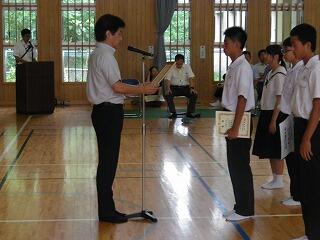 今日は全校集会前に表彰式を行いました。「学び」、「鍛える」ことを実践し、「誇る」ことにつながって努力が実を結んだ証となるのです。これぞ三松中。表彰された生徒の皆さん、おめでとう。