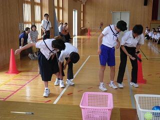 (体育館では組体操の並び位置の確認を行いました。)