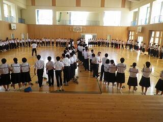 暦も9月になりました。学校では体育大会に向けての全体練習が始まっています。今日は選手入場や行進を中心とした練習内容でした。両団長の大きなかけ声を合図に生徒全員が声を出して足並みが揃うように練習を行っていました。これから全体練習や団別の練習そして体育大会の準備など本番に向けて生徒達は忙しい毎日になりそうです。