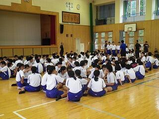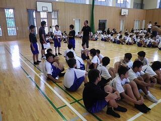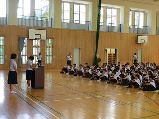 1学期後半の始まりにあたり全校集会が開かれました。集会で校長先生から、これから先の学校生活について自分でよく考え判断することの大切さについてお話がありました。