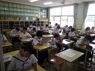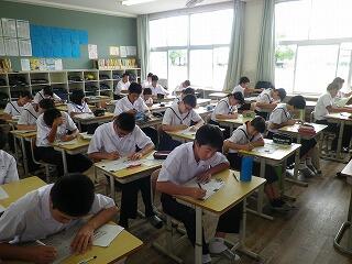 久しぶりに生徒たちが元気に登校しました。今日と明日の2日間は「サマースクール」です。サマースクールでは、夏休みの期間を利用して基礎学力の向上や個別指導の充実を図ることとしています。また、来週からの授業再開に向けて生活のリズムを少しずつ元に戻していくことにも効果的です。サマースクールでは高校生などの協力も得ながら生徒たちは学習に取り組んでいました。