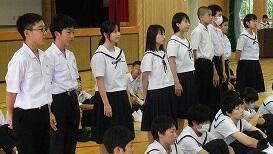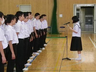 今日は今週の土曜日、日曜日に開催される西諸地区中学校総合体育大会に向けて壮行式が行われました。各部のキャプテンが力強く大会に向けての抱負を披露しました。