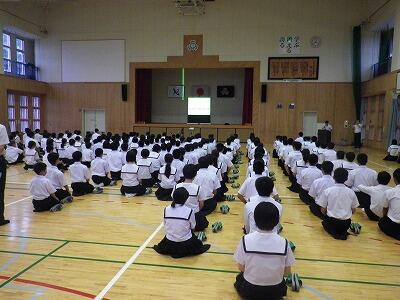 今日は西諸地区中学校総合体育大会で入賞した競技の校納・表彰式が行われました。