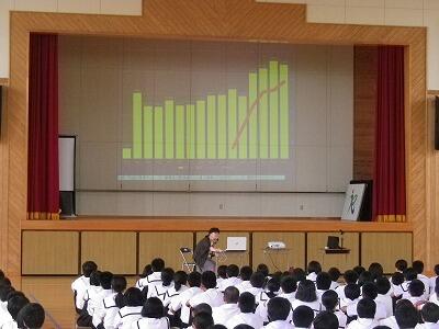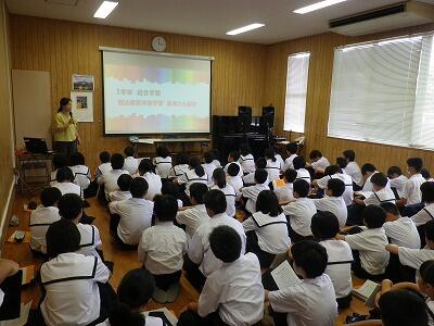 今日は1年生で授業がありました。聞き慣れない言葉や説明に少々戸惑いもありましたが、授業が進むにつれて生徒たちは関心をもって説明を聞いていました。