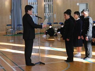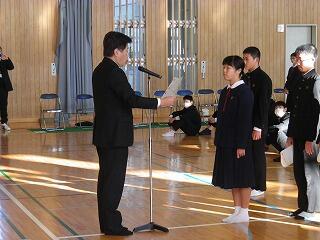 校内の皆勤賞をはじめ、小林市青少年育成市民会議主催の作品募集の入賞者及び日本能力漢字検定協会漢字検定の各級合格者に対する表彰が行われました。