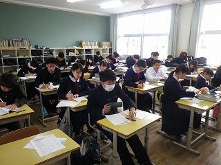 インフルエンザは現在のところ落ち着いています。生徒たちの声もにぎやかで元気な様子です。明日は参観日と立志式が予定されています。特に2年生は全員元気な姿で立志式に臨んでほしいですね。