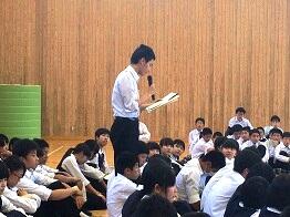 今日は生徒集会が行われました。今日は第1期目標に対する反省と第2期の目標と具体策について各委員会から報告がありました。共通の反省点としてはクラスでの具体的な取り組みに差があったことのようです。すべてを完全に実行することはなかなか難しいことですが、今日の反省を生かし、次はすべての目標について具体的な取り組みがなされるよう期待したいです。