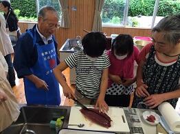 宮崎県漁連の御協力で、魚のさばき方と調理についてでした。