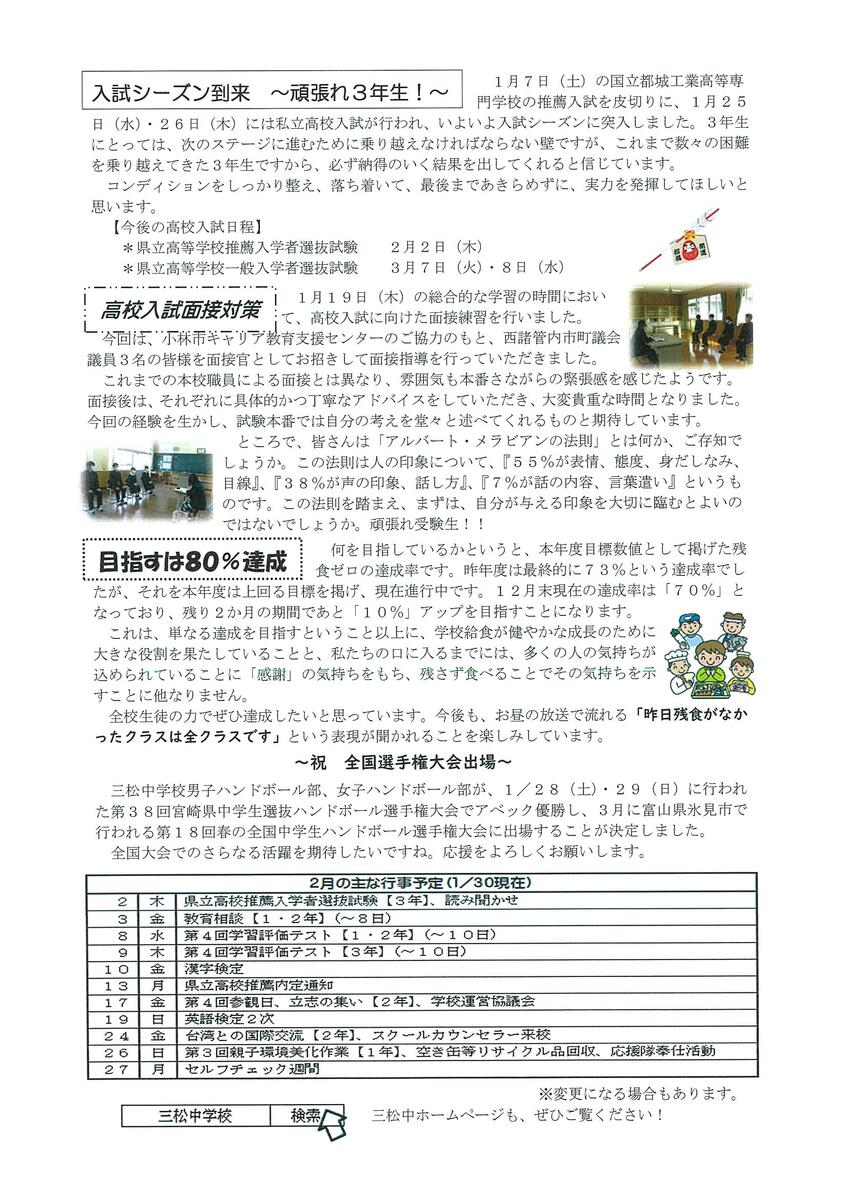 学校だより「三松魂」令和4年度1月30日号が発行されました