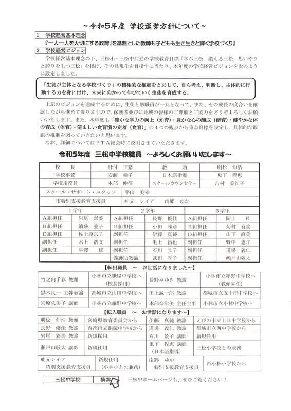 学校だより「三松魂」令和5年1月6日号を発行しました。