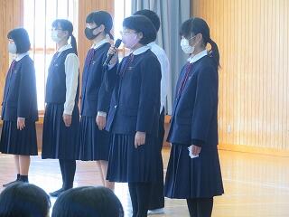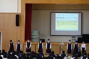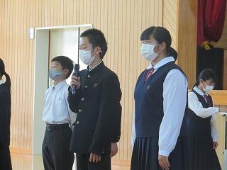 特に学習委員会からは3年生の高校入試のためにより良い学習態度を、そして保体委員会からはインフルエンザの予防について呼びかけがありました。大事な時期だからこその呼びかけです。生徒会を中心に1,2年生全員で3年生を応援ですね。