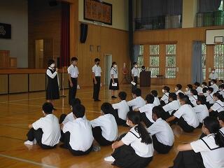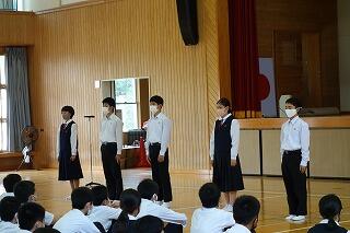 三松中学校の伝統を引き継ぎつつ、みなさんが掲げた公約が実践できる行動力を期待しています。