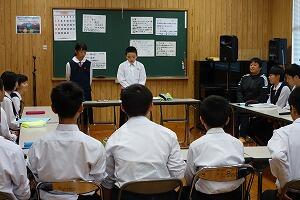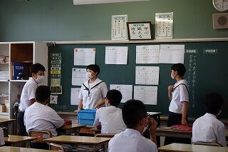 今年度の生徒総会は放送によるもので、生徒会執行部から「いじめについてのアンケート」の報告をもとに、各学級の現状と対策について話し合い、各学級のいじめ追放宣言を決定しました。