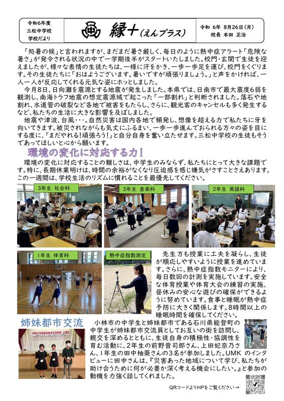 学校だより『縁+(えんプラス)』8月26日号を掲載しました
