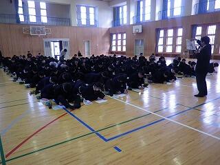 「将来の夢は何ですか?」という問いかけに対して生徒が手を挙げて「英語を学びたい。」、「海外に行きたい。」と答えていましたが、その夢を叶えるためにこれからどうすればいいか真剣に考え、実行に移すことができるよう行動してほしいですね。