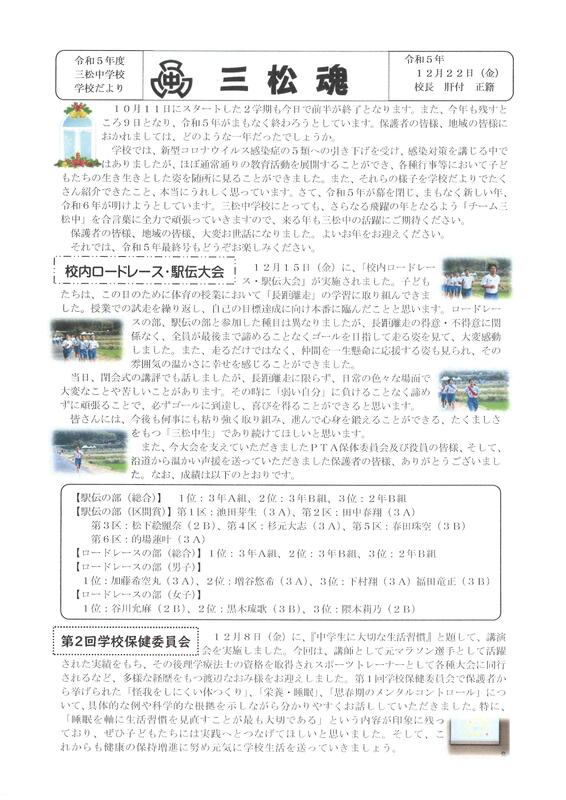 小林市立三松中学校ホームページへようこそ!