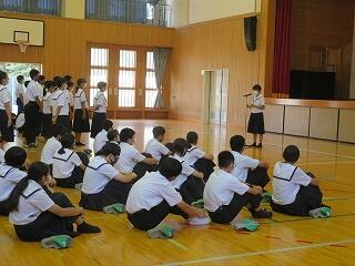 校長先生からは、生徒総会や西諸地区中学校体育大会、体育大会をとおして、個々の可能性や成長が見られたことや、1学期の成果と課題を明確にすること、通知表の所見(学級担任の先生の思い)についてお話がありました。