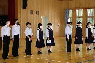在校生代表の激励の言葉として、3年生の中窪惟翔さんが「県大会では、最後まであきらめず、練習の成果を十分に発揮してください。」とありました。