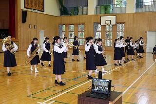 最後は、吹奏楽部が各学級の自由曲を中心に演奏ました。スライドで各学級の合唱練習風景が放映されるなど、これまでの取組を思い出させる素晴らしい演出がありました。